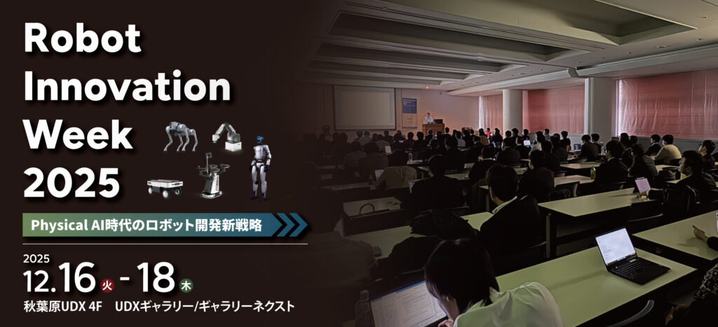 「Robot Innovation Week 2025」は、ヒューマノイドロボット、4足歩行ロボット、ロボットアーム、車両型移動ロボットなどの最先端のロボット開発者が、その開発や取組みなどの事例を紹介するユーザ事例講演や、メーカーや業界第一人者の最新のロボット製品やそのテクノロジーに関する基調講演など、複数のテーマ別カンファレンスおよび最新技術や製品の展示を通じて、活用事例や実証実験、開発事例をご紹介し、最先端ロボットの開発をディープに体感できる技術交流イベントです。